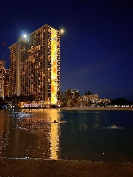2月の夕暮れなので、ハワイとはいえ、ラグーンの水は少し冷たかったです。なぜか泳いでる子供達もいてびっくりしました。寒い国の人たちなんだろうか・・・・